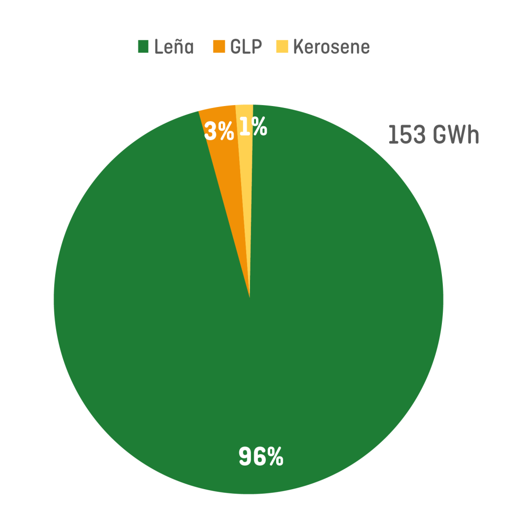 Punto clave: La leña es el combustible predominante en el sector residencial de la comuna, con alrededor de un 96%, seguido por el gas (GLP) con 3% en la matriz energética.